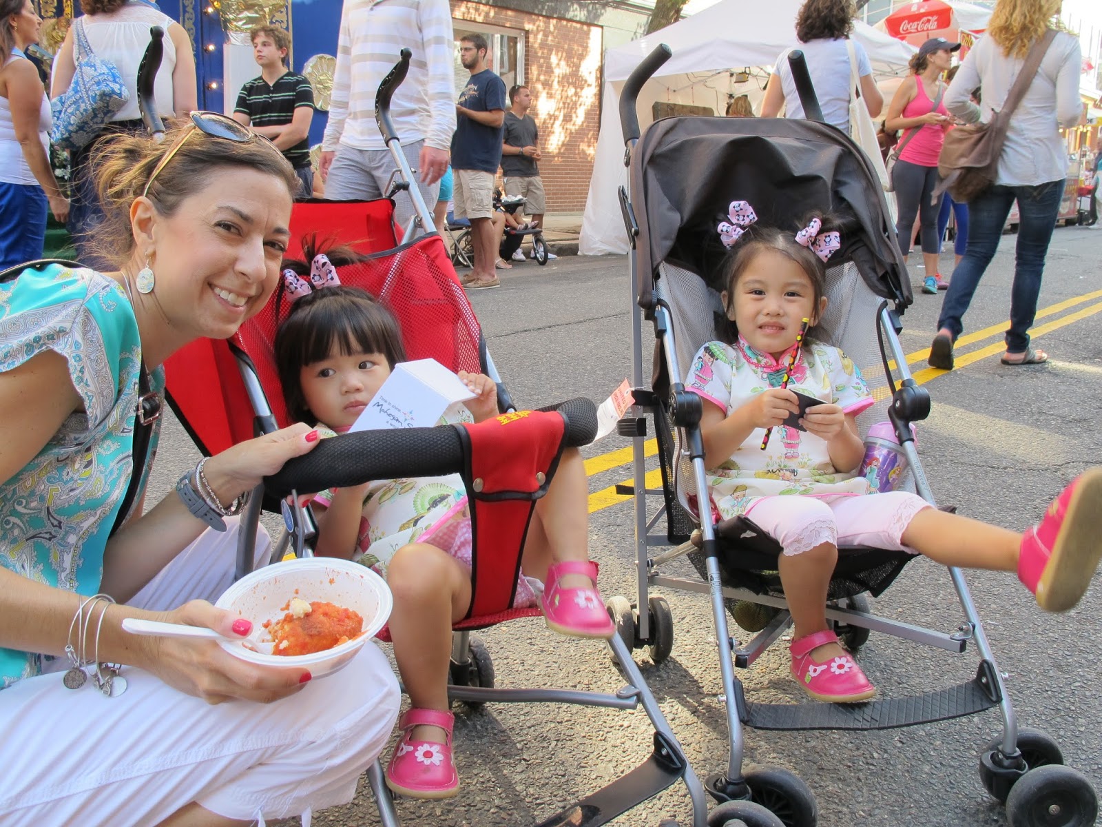 Enjoying an arancini at the Madonna Della Cava feast in the North End.